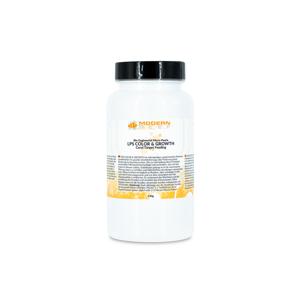 LPS COLOR & GROWTH is micro-pearl, high-protein coral food for target direct or broadcast feeding. The micro-pearl technology used to create this product is designed to prevent the food from diluting into the water. Instead, it travels into the mechanical filtration before it can break down and cause nutrient accumulations. This feature allows reefers to remove excess foods after the feeding process, before declining water quality. It improves the growth and coloration of corals and promotes a better immune system. This formula can be used for all corals, particularly for LPS corals.